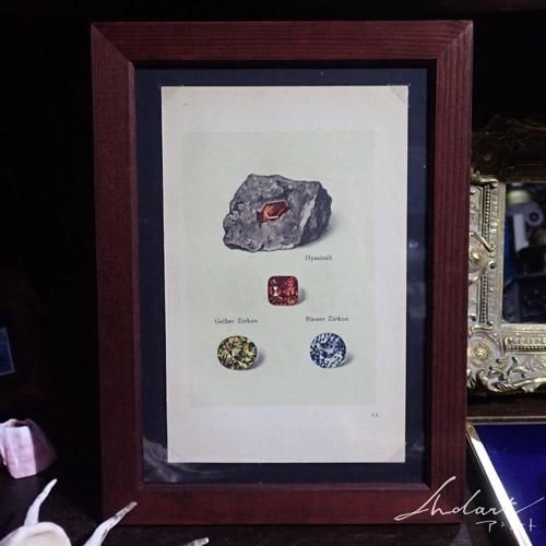 繊細でありながら重厚さをも感じる、美しい鉱物が描かれたビンテージの図版です。